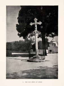 This is an original halftone print of the beautiful old stone cross at Cimiez, in Nice, France.